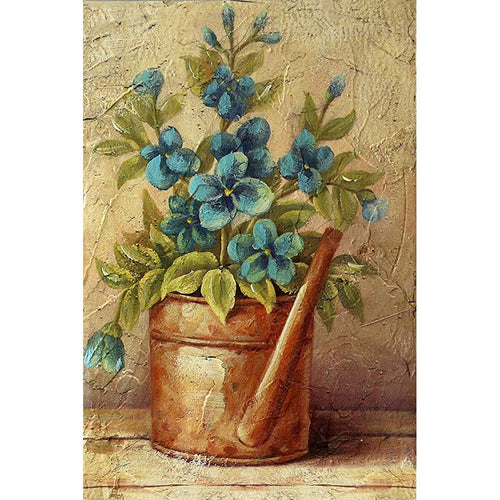 Diamond Painting Blå Blommor I Kanna