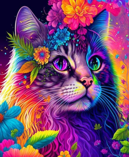Diamond Painting Color Cat And Flowers*