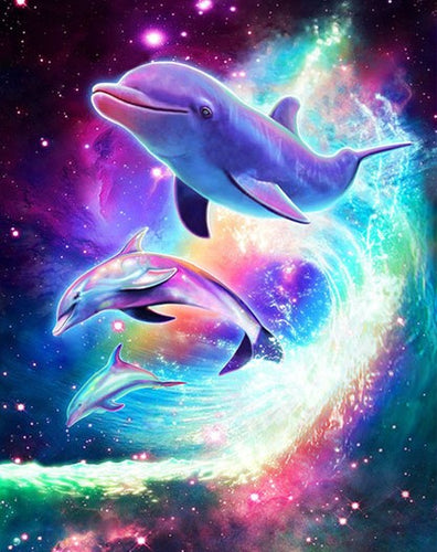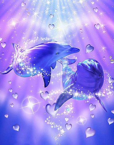 Diamond Painting AB Drills Dolphins Sunset Wave*
