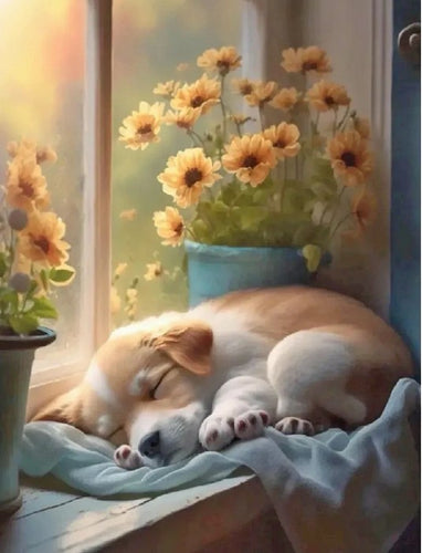 Diamond Painting Hundvalp I Fönster*
