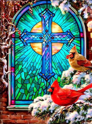 Diamond Painting Vinterfåglar Kyrkofönster*