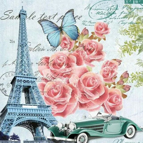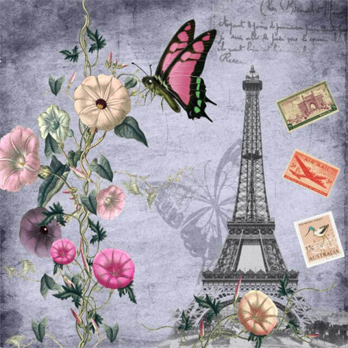 Diamond Painting Eiffeltornet Blomma Och Fjäril