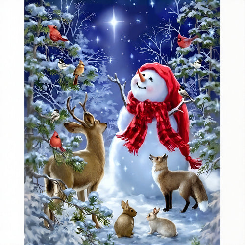 Diamond Painting Fairy Dust Drill Snowman And Forest Animals