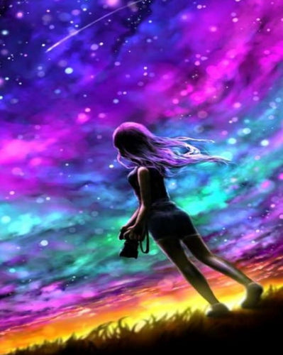 Diamond Painting Tecknad Flicka Stjärnhimmel