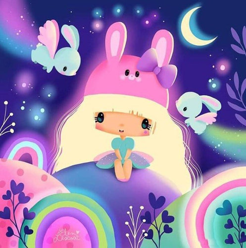 Diamond Painting Tecknad Flicka Och Kaniner*