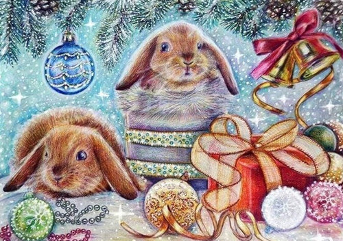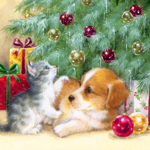 Diamond Painting Kattunge Och Valp Under Julgran*