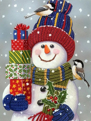 Diamond Painting Merry Christmas Nalle Och Snögubbe*