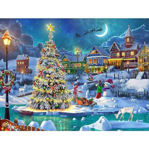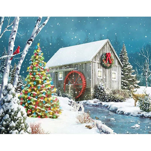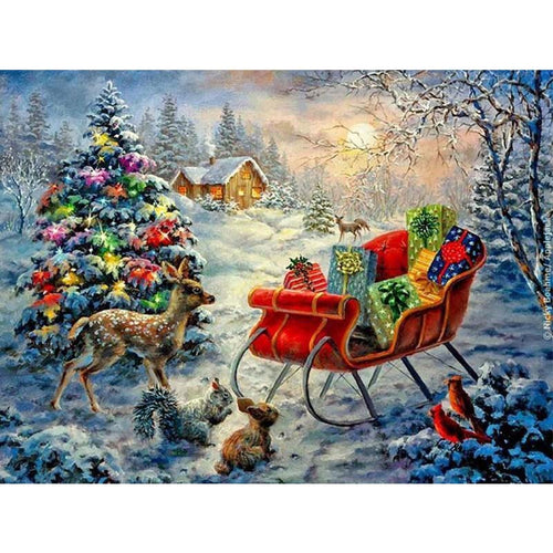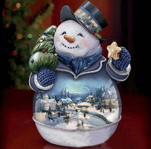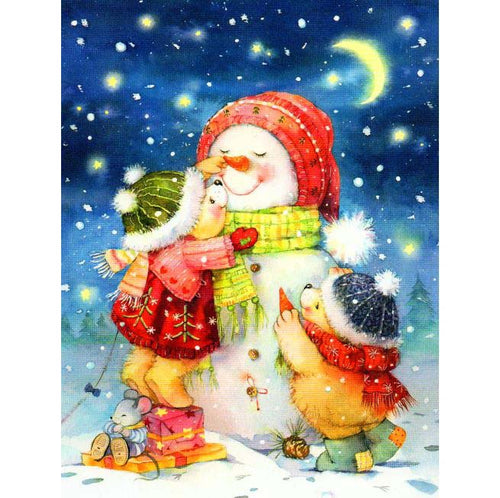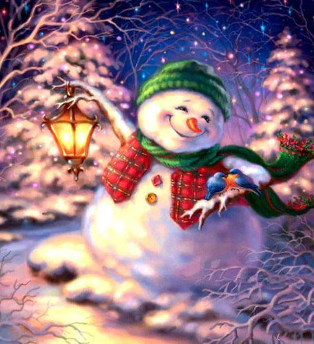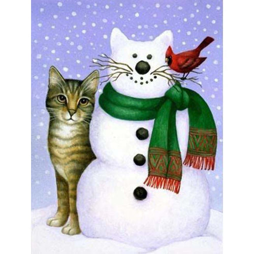 Diamond Painting Katt, Fågel Och Snögubbe*