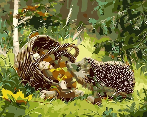 Paint By Numbers Hedgehog And Mushrooms 40x50