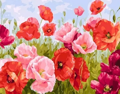 Paint By Numbers Röda Och Rosa Vallmo 40x50