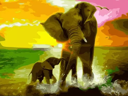 Paint By Numbers Elefanter Vattenlek 40x50