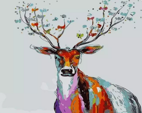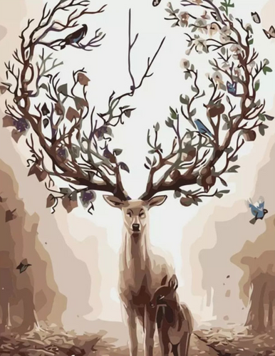 Paint By Numbers Deer With Flowers And Butterfly 40x50