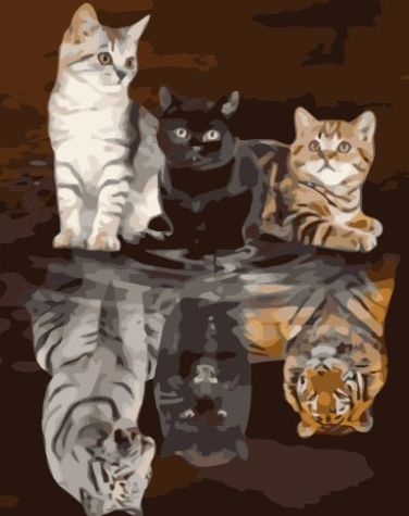 Kompletta set med förtryckt canvas, färdigblandade numrerade färger och ett set med penslar.