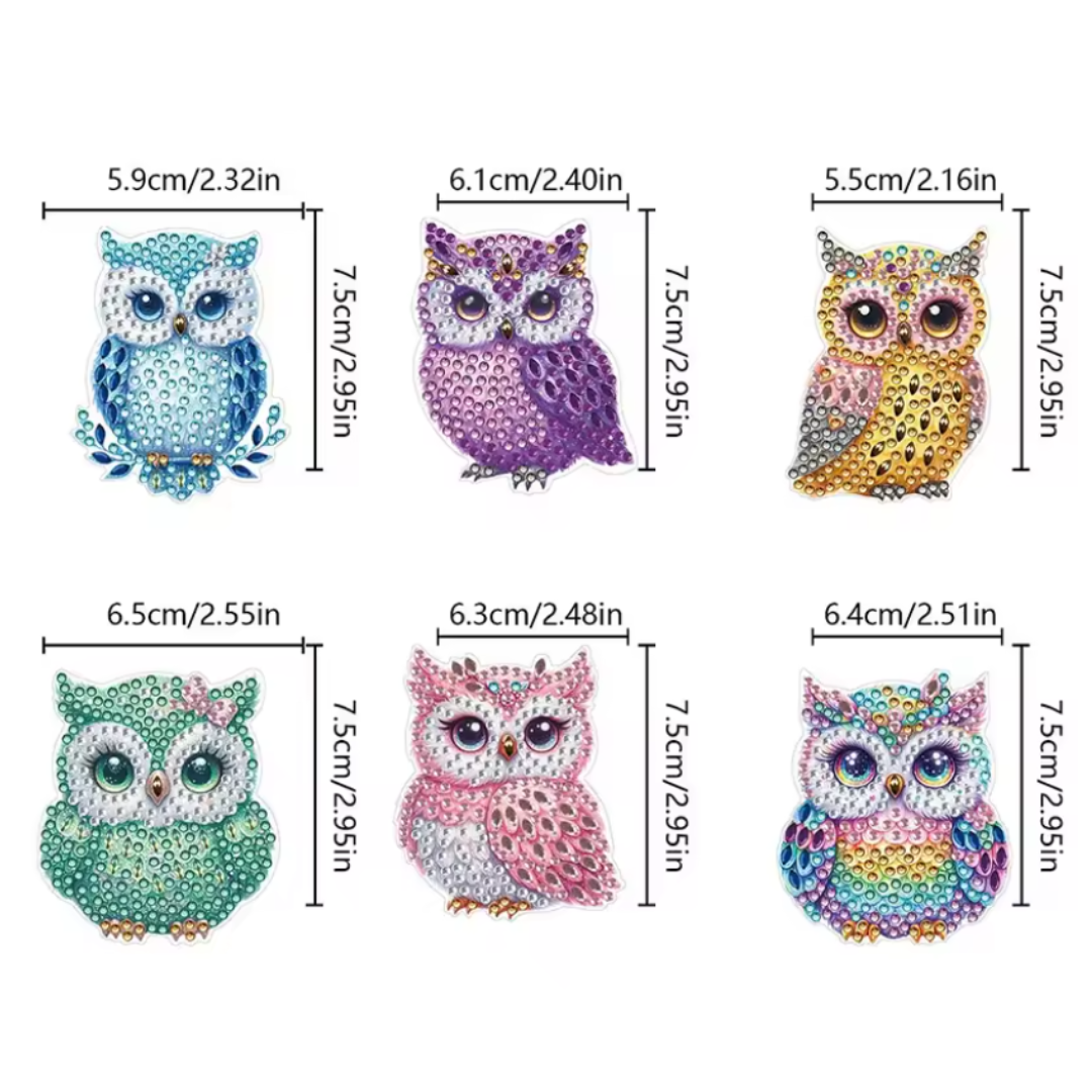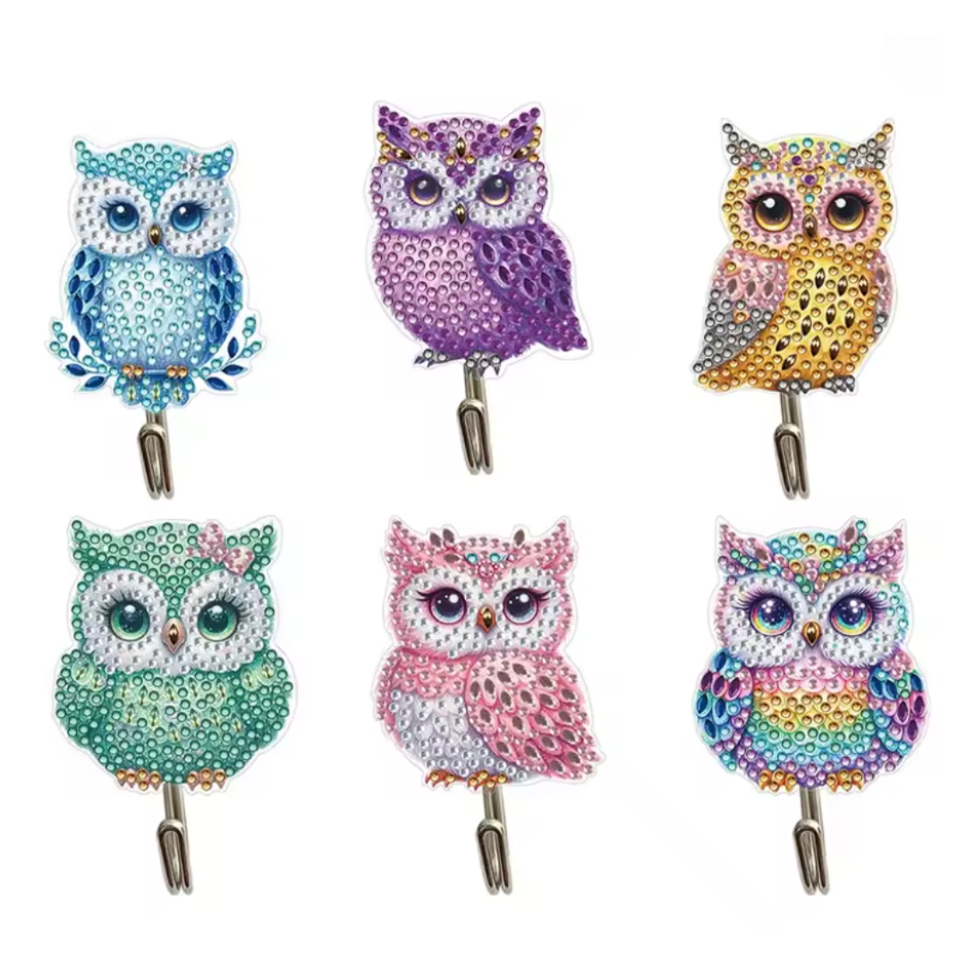 Setet innehåller: 6 st ugglor att pärla, väggkrokar, pärlor, tråg och vax.